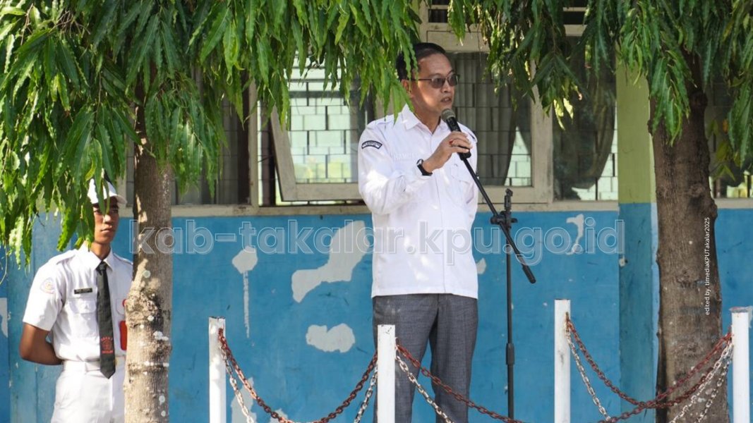 Takalar, kab-takalar.go.id, Ketua KPU Hamdani Pattiiha, bertindak sebagai Pembina Upacara di SMA Negeri 3 Takalar, Senin (13/10/2025).