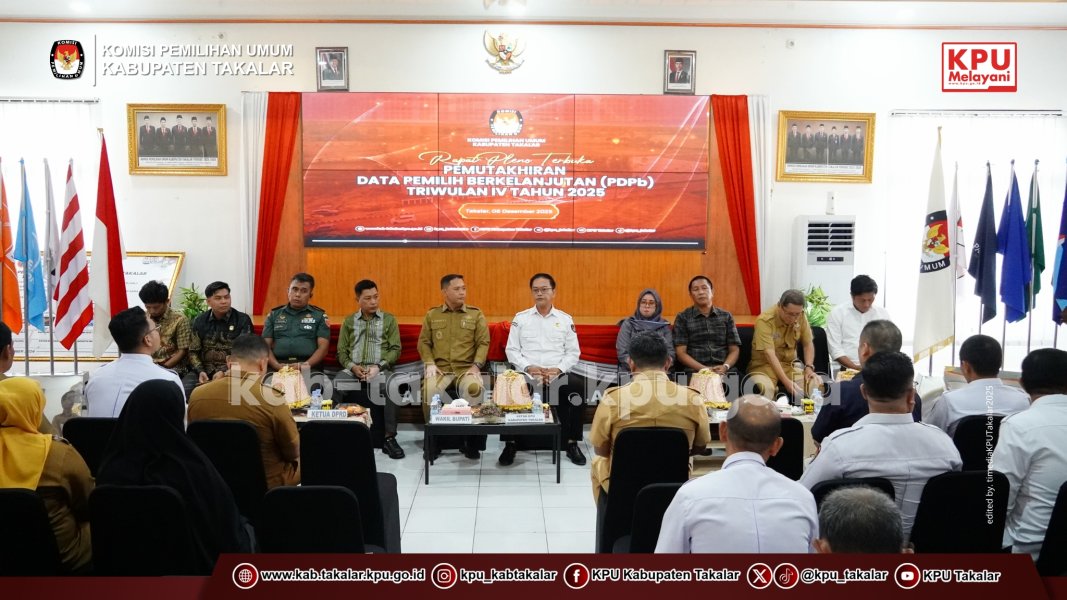Rapat pleno terbuka ini dilaksanakan sebagai bagian dari komitmen KPU dalam menjaga akurasi, validitas, dan keberlanjutan data pemilih di Kabupaten Takalar. Melalui rapat pleno ini, KPU Kabupaten Takalar membuka ruang diskusi dan koordinasi antar instansi terkait untuk saling bersinergi dalam menjalankan instruksi UU No. 7 Tahun 2017 dan PKPU No. 1 Tahun 2025, yang melibatkan sinkronisasi data kependudukan (KTP-el, KK, IKD), koordinasi lintas lembaga (Dukcapil, Bawaslu), dengan fokus pada penambahan pemilih baru (usia 17 tahun, menikah), perbaikan data (pindah domisili, meninggal, pensiun TNI/Polri), dan pembersihan data invalid, yang dilaksanakan oleh KPU secara berkala (setiap 3 bulan). (humas kpu/Ihdiani/fotoRafly/ed diR)