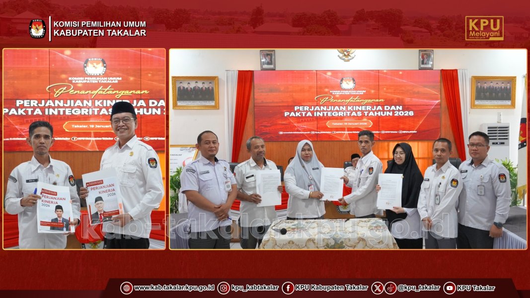 Takalar, kab-takalar.kpu.go.id, Mengawali Tahun 2026, Komisi Pemilihan Umum Kabupaten Takalar melaksanakan Penandatanganan Perjanjian Kinerja dan Pakta Integritas Tahun 2026 di Aula Sekretariat KPU Kabupaten Takalar, Senin (19/01/2026).