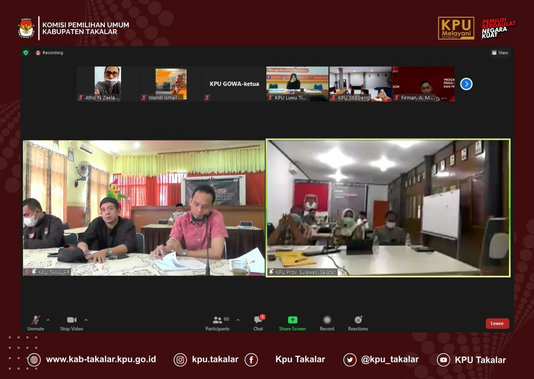 Bakohumas KPU Takalar, Jum'at (28/05/2021) KPU Provinsi Sulawesi Selatan kembali memantau Progres Persiapan Desa Peduli Pemilu dan Pemilihan (DP3) diseluruh KPU Kabupaten/Kota se-Sulawesi Selatan dalam Rakor yang dilaksanakan secara Daring.