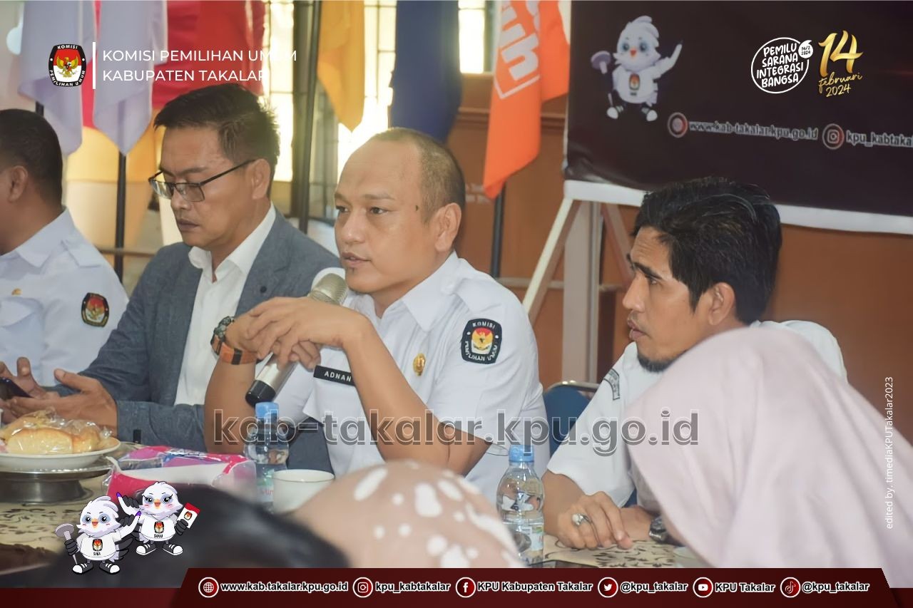 Dalam sambutannya, Sekretaris KPU Provinsi Sulawesi Selatan menyampaikan kepada seluruh Ketua PPK beserta Sekretariat PPK se Kabupaten Takalar agar selalu menjaga sinergitas dan kekompakan sesuai dengan tugas dan wewenangnya. “PPK dan Sekretariat PPK ibarat dua sisi mata uang, tanpa satu sisi tidak akan bisa berjalan, sehingga dibutuhkan sinergitas dalam menjalankan tugas untuk menyukseskan Pemilu 2024” ujar Adnan.