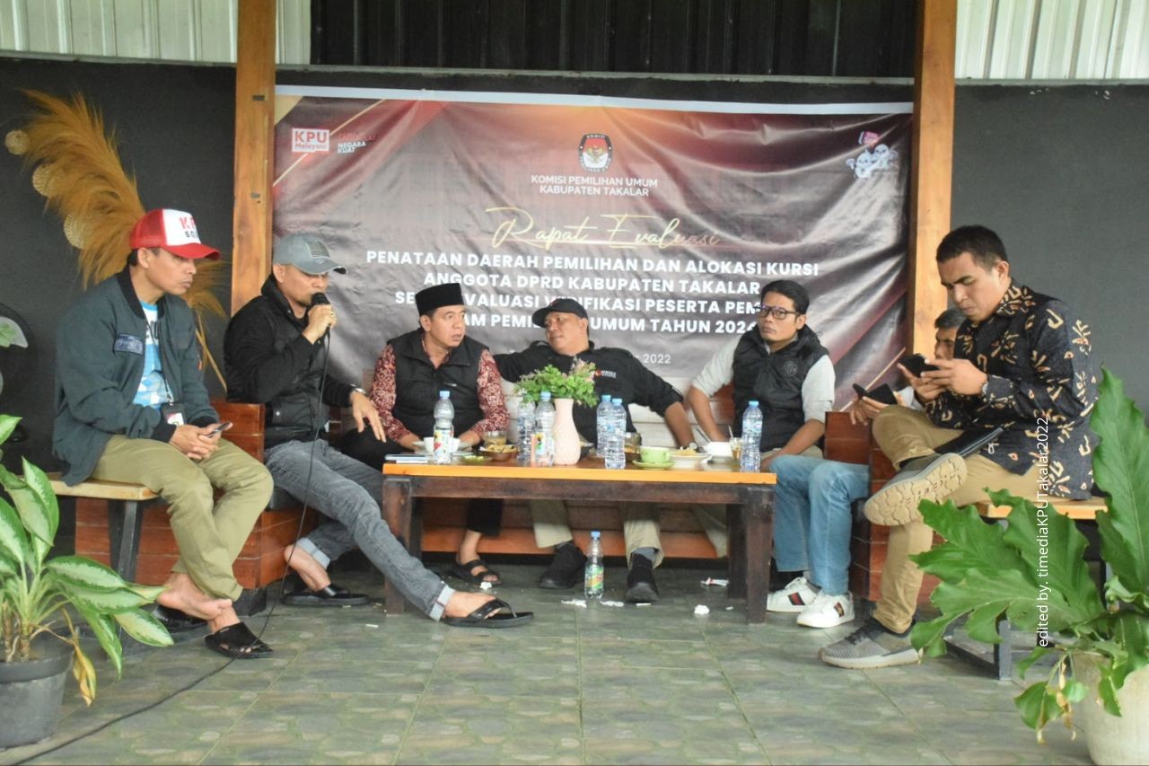 Takalar, kab-takalar.kpu.go.id, Jum'at (30/12/2022) KPU Kabupaten Takalar melaksanakan Rapat Evaluasi Penataan Dapil dan Alokasi Kursi serta Evaluasi Verifikasi Peserta dalam Pemilu Tahun 2024.