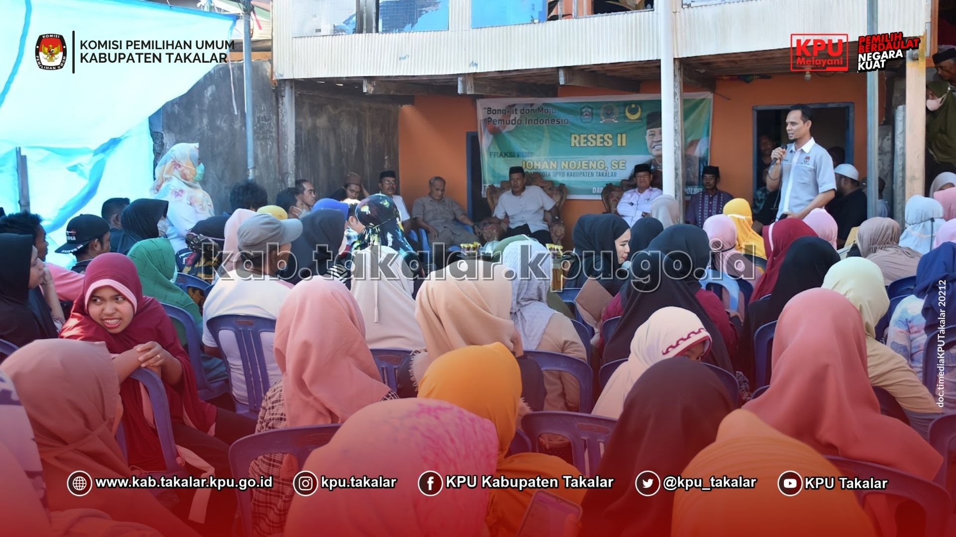 Takalar, kab-takalar.kpu.go.id, Anggota KPU Takalar Divisi Sosialisasi Pendidikan Pemilih dan Partisipasi Masyarakat (Sosdiklih Parmas) Alimuddin mengahdiri undangan reses dari salah satu anggota DPRD Kabupaten Takalar dari Partai Bulan Bintang, Rabu (08/6/2022).