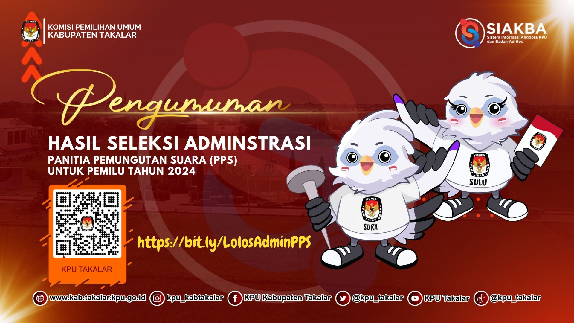 kab-takalar.kpu.go.id, Penetapan Hasil Seleksi Administrasi Panitia Pemungutan Suara (PPS) untuk Pemilihan Umum Tahun 2024 dapat diakses di