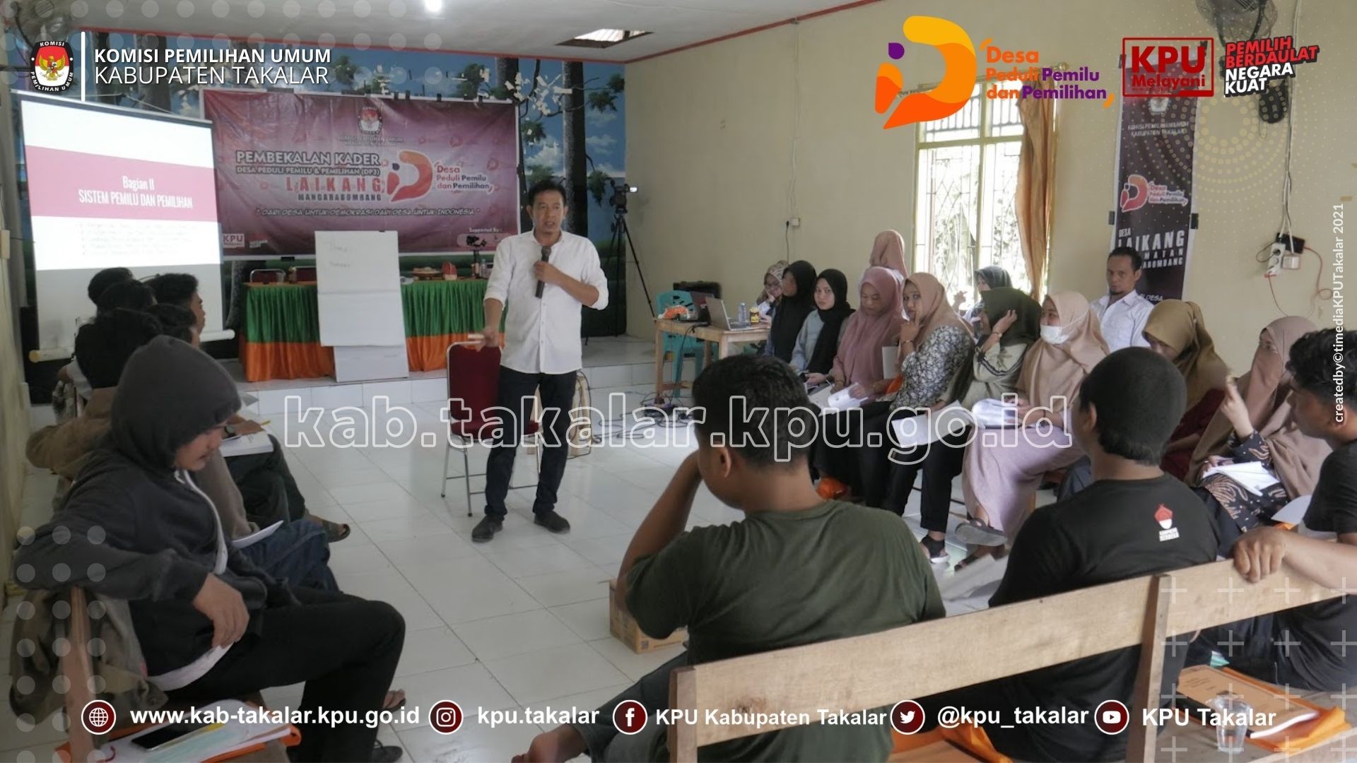 Takalar, kab-takalar.kpu.go.id, Kamis (2/12) KPU Kabupaten Takalar kembali melaksanakan pembukaan sekaligus pembekalan Kader Desa Peduli Pemilu dan Pemilihan (DP3) di Desa Laikang Kecamatan Mangarabombang Kabupaten Takalar yang merupakan lokus kedua yang menjadi pelaksana program DP3.
