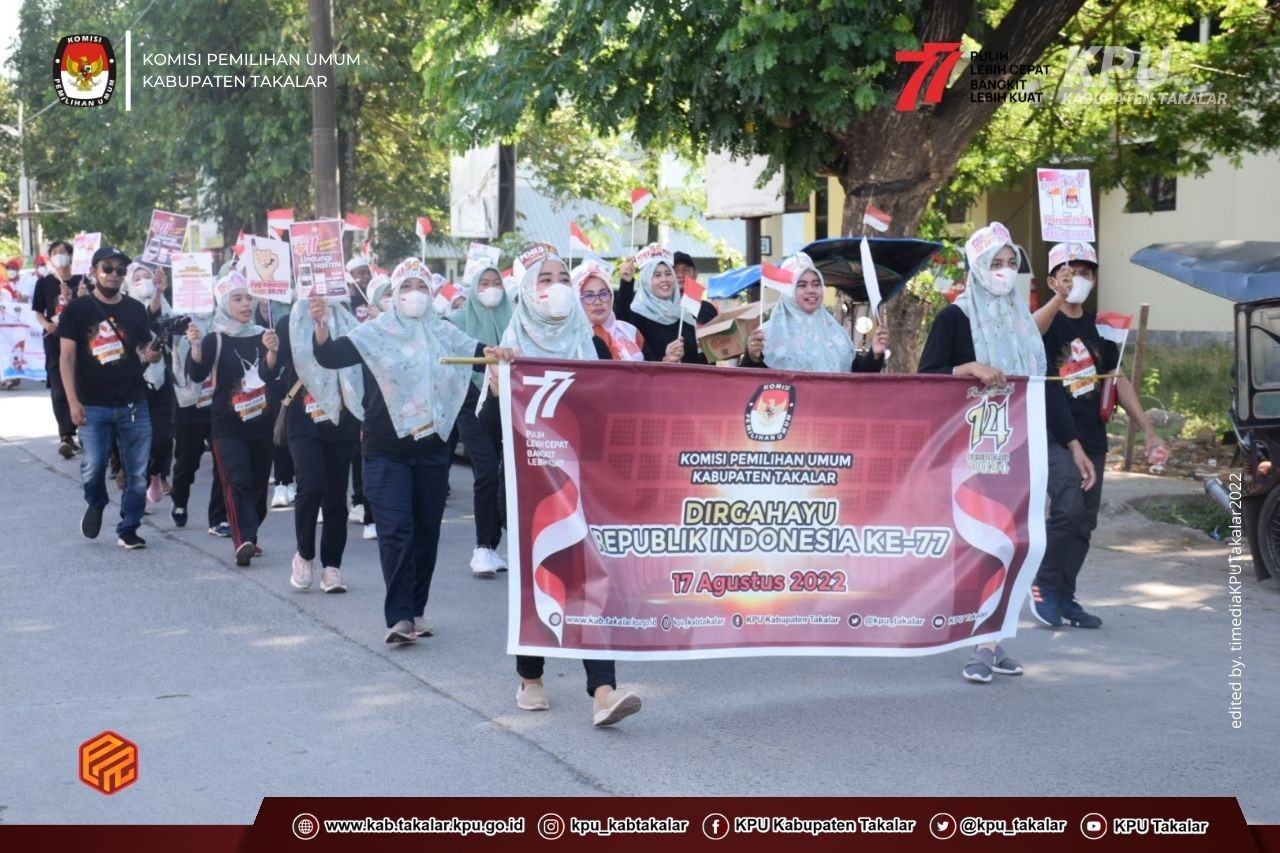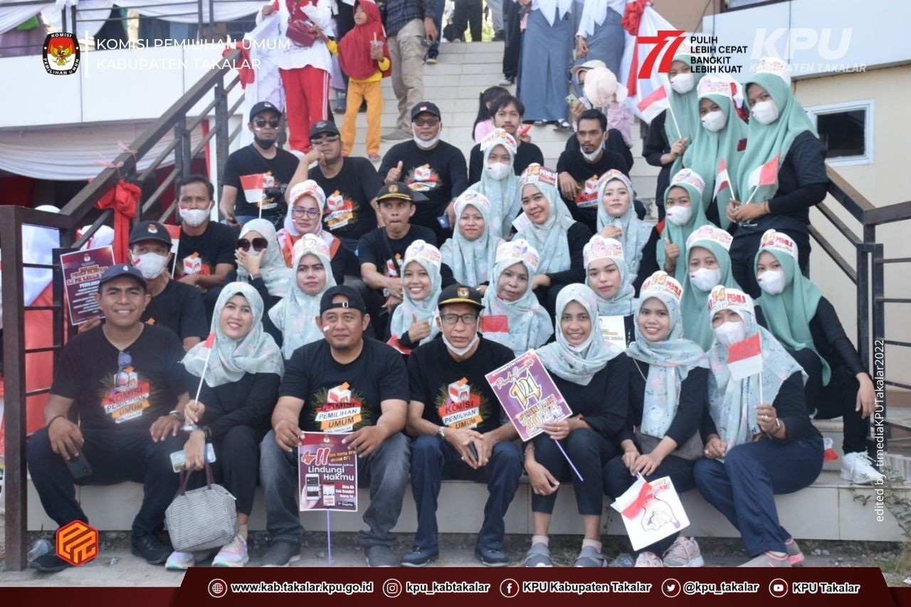 Takalar, kab-takalar.kpu.go.id, KPU Kabupaten Takalar ikut berpartisipasi dalam kegiatan karnaval yang dilaksanakan Pemerintah Kabupaten Takalar dalam rangka memperingati Hari Kemerdekaan Republik Indonesia yang ke-77 tahun di alun-alun lapangan H. Makkatang Daeng Sibali Kabupaten Takalar, Selasa (16/8/2022).