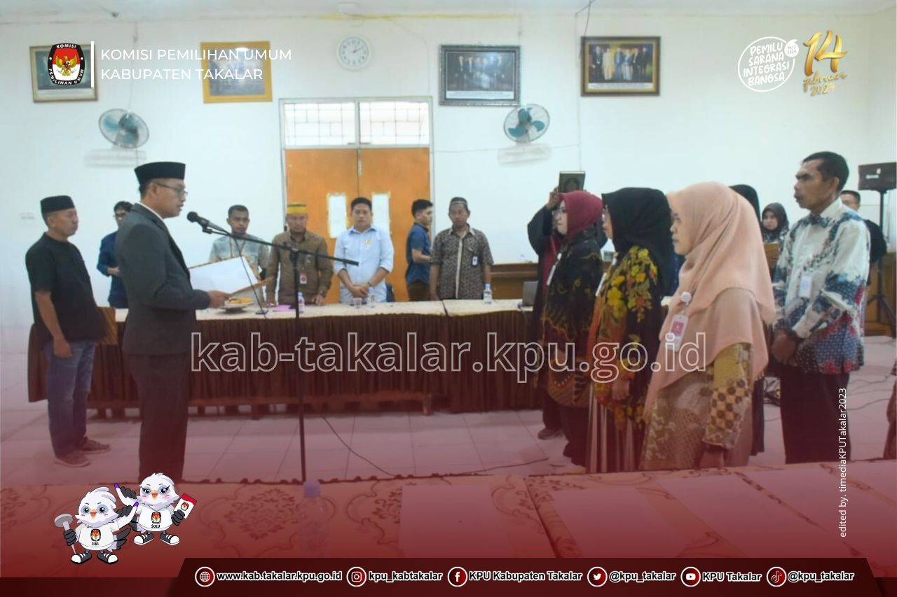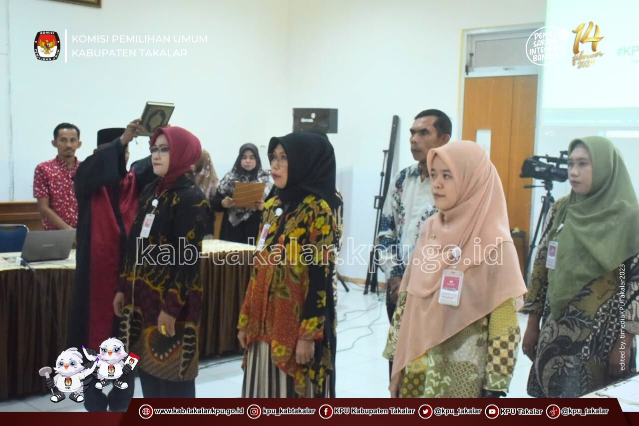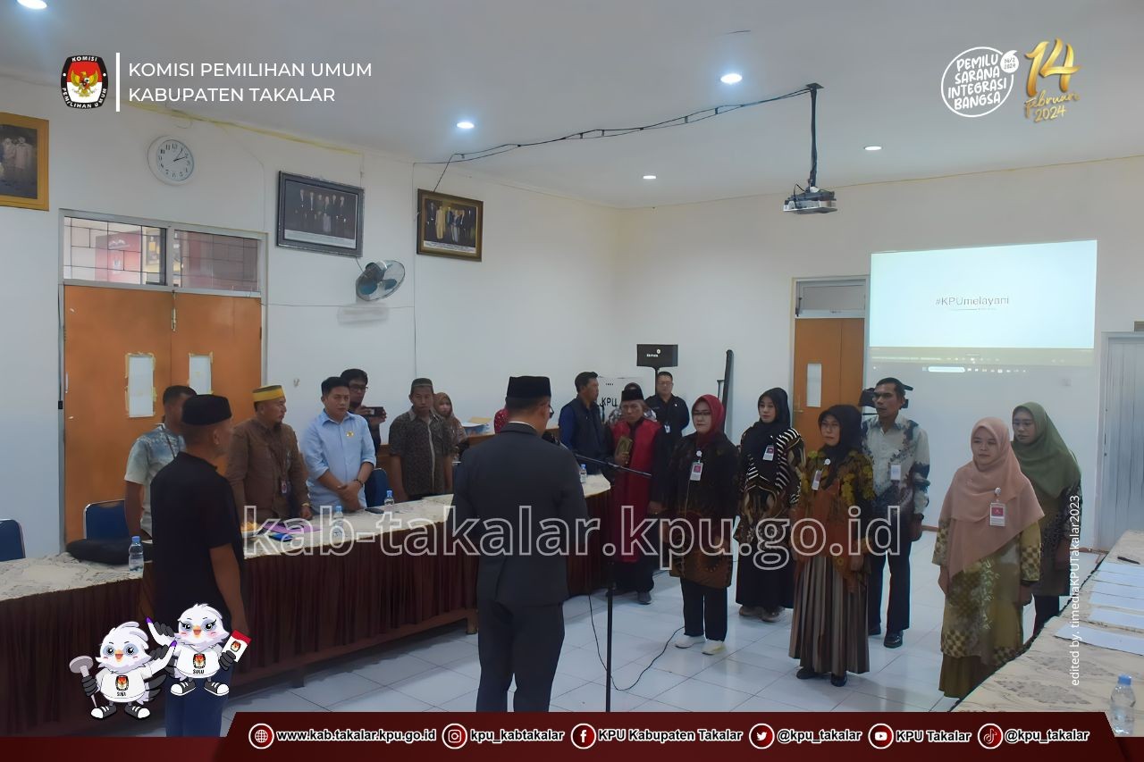 Takalar, kab-takalar.kpu.go.id, Ketua KPU Hamdani Pattiiha didampingi seluruh anggota KPU, melantik anggota Panitia Pemilihan Kecamatan (PPK) dan Panitia Pemungutan Suara (PPS) Pemilihan Umum tahun 2024 Penggantian Antar Waktu (PAW), Minggu (10/9/2023).