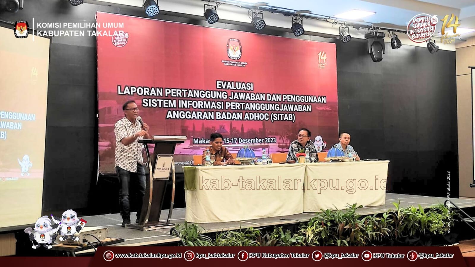 Takalar, kab-takalar.kpu.go.ig, Jumat (15/12/2023) KPU Kabupaten Takalar melaksanakan Evaluasi Laporan Pertanggungjawaban dan Penggunaan Sistem Informasi Pertanggungjawaban Badan Adhoc (SITAB).