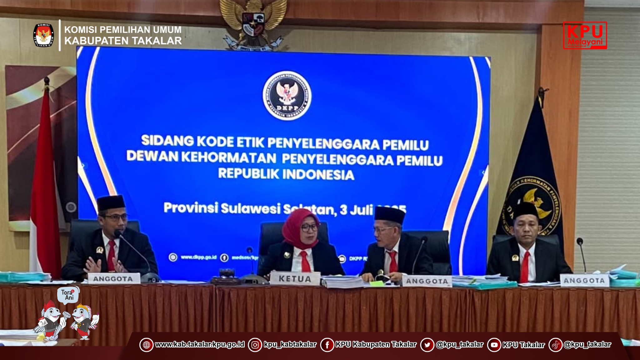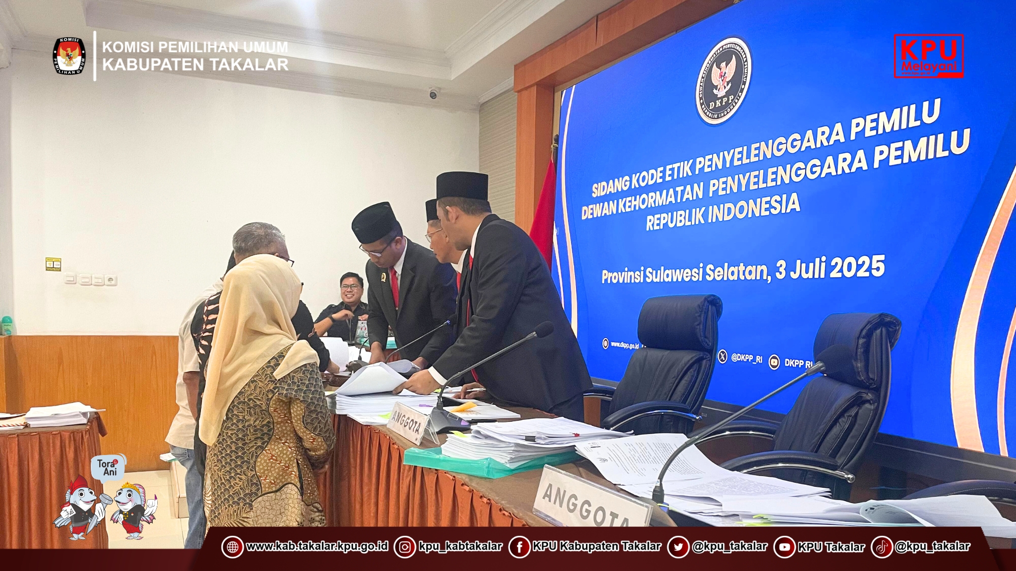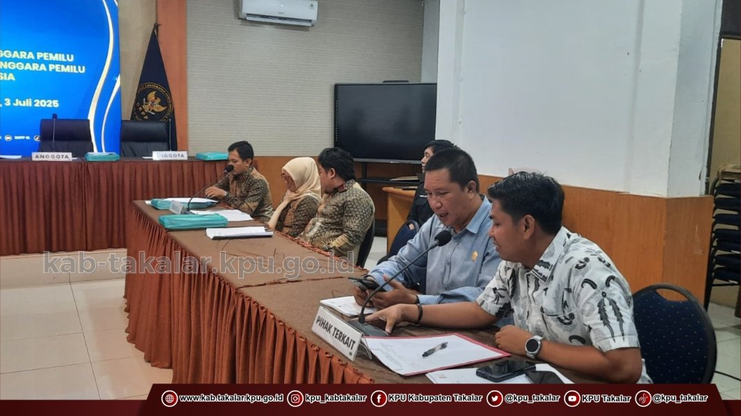 Makassar, kab-takalar.kpu.go.id, Komisi Pemilihan Umum (KPU) Kabupaten Takalar menghadiri undangan sebagai Pihak Terkait dalam persidangan Dewan Kehormatan Penyelenggara Pemilu Republik Indonesia (DKPP RI) atas agenda sidang pemeriksaan dugaan pelanggaran Kode Etik Penyelenggara Pemilu (KEPP) di Kantor KPU Provinsi Sulawesi Selatan, Kamis (03 Juli 2025).