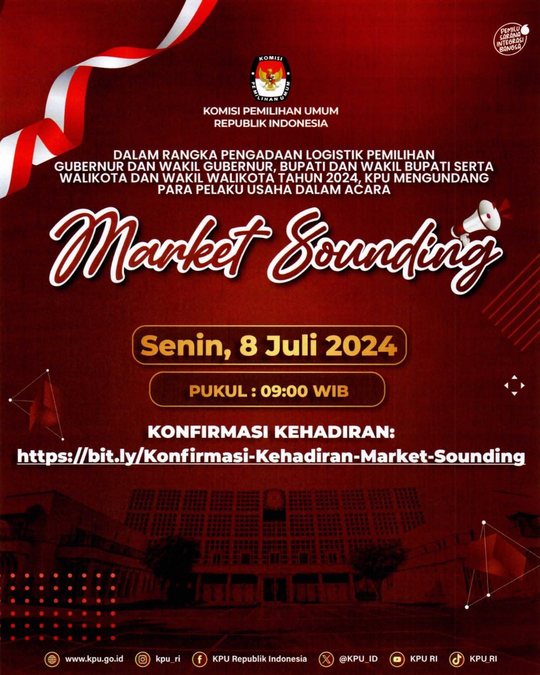 Pemberitahuan/Pengumuman Pelaksanaan Kegiatan Market Sounding dalam rangka Pengadaan Logistik Pemilihan 2024 Persiapan Pengadaan Logistik Pemilihan Gubernur dan Wakil Gubernur, Bupati dan Wakil Bupati, serta Walikota dan Wakil Walikota Tahun 2024