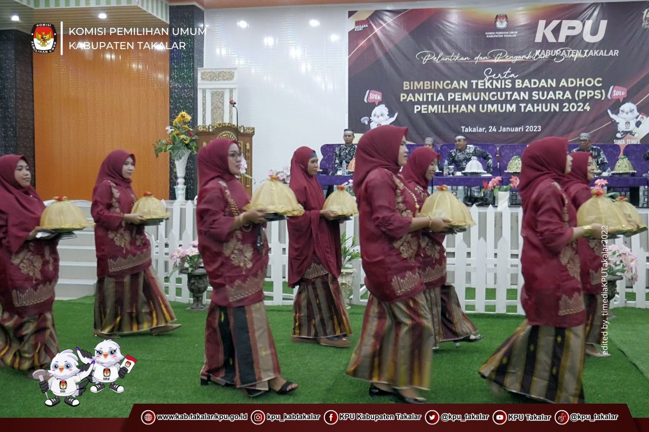 Prosesi pelantik ini dikemas berbeda, diawali defile anggota Panitia Pemilihan Kecamatan (PPK) bersama masing-masing calon anggota Panitia Pemungutan Suara (PPS) yang aka dilantik dengan mengenakan busana adat makassar baju bodo dan jas tutup dengan diiringi tabuhan ganrang makassar saat memasuki ruangan tempat pelantikan.