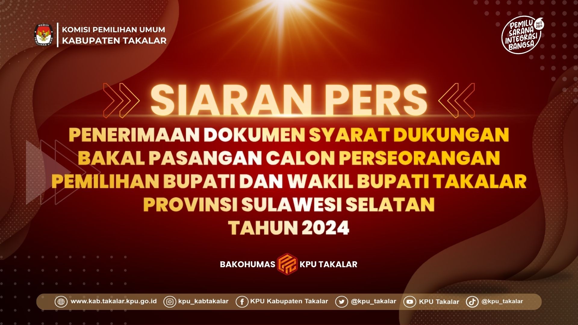 PENERIMAAN DOKUMEN SYARAT DUKUNGAN BAKAL PASANGAN CALON PERSEORANGAN PEMILIHAN BUPATI DAN WAKIL BUPATI TAKALAR PROVINSI SULAWESI SELATAN 2024