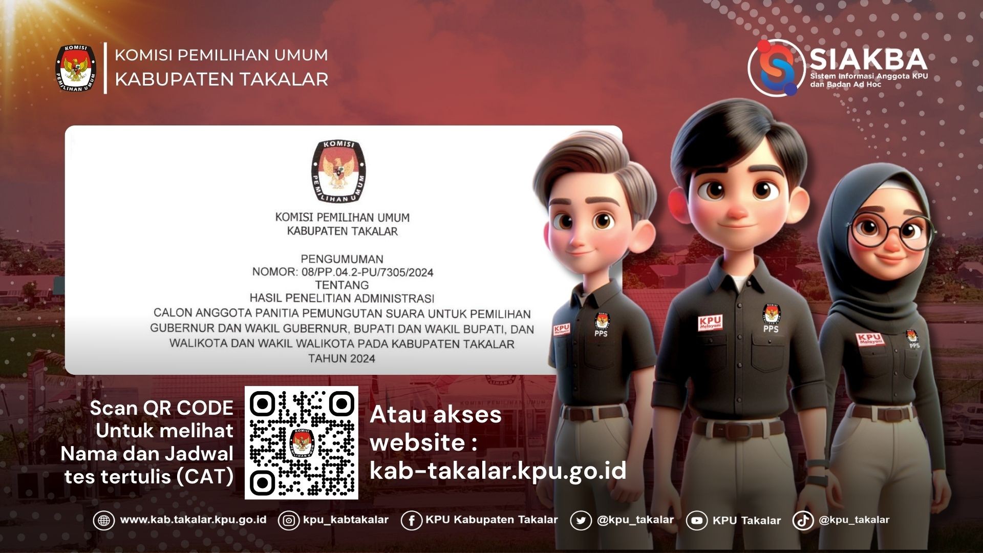 kab-takalar.kpu.go.id, Berikut Pengumuman Hasil Penelitian Administrasi calon anggota Panitia Pemungutan Suara (PPS) untuk Pemilihan Serentak Tahun 2024.
