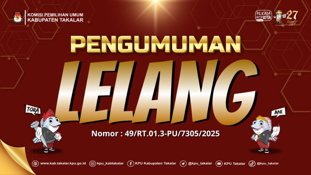 Takalar, kab-takalar.kpu.go.id, Komisi Pemilihan Umum (KPU) Kabupaten Takalar dengan perantaraan Kantor Pelayanan Kekayaan (KPKNL) Makassar akan melaksanakan Lelang Barang Milik Negara (BMN).
