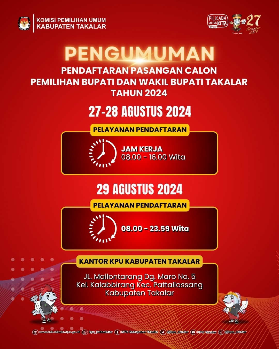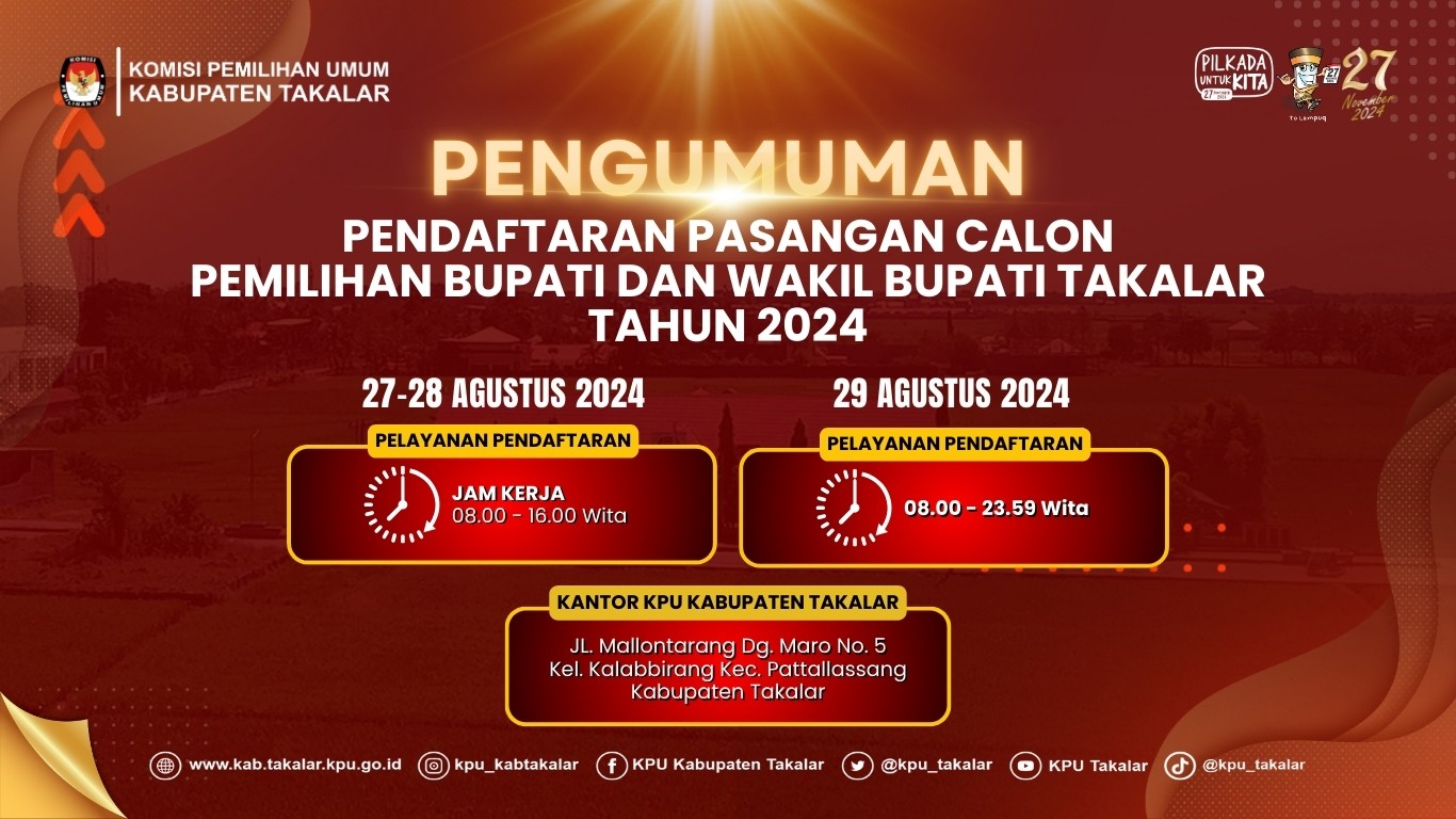 PENGUMUMAN PENDAFTARAN PASANGAN CALON BUPATI DAN WAKIL BUPATI TAKALAR TAHUN 2024