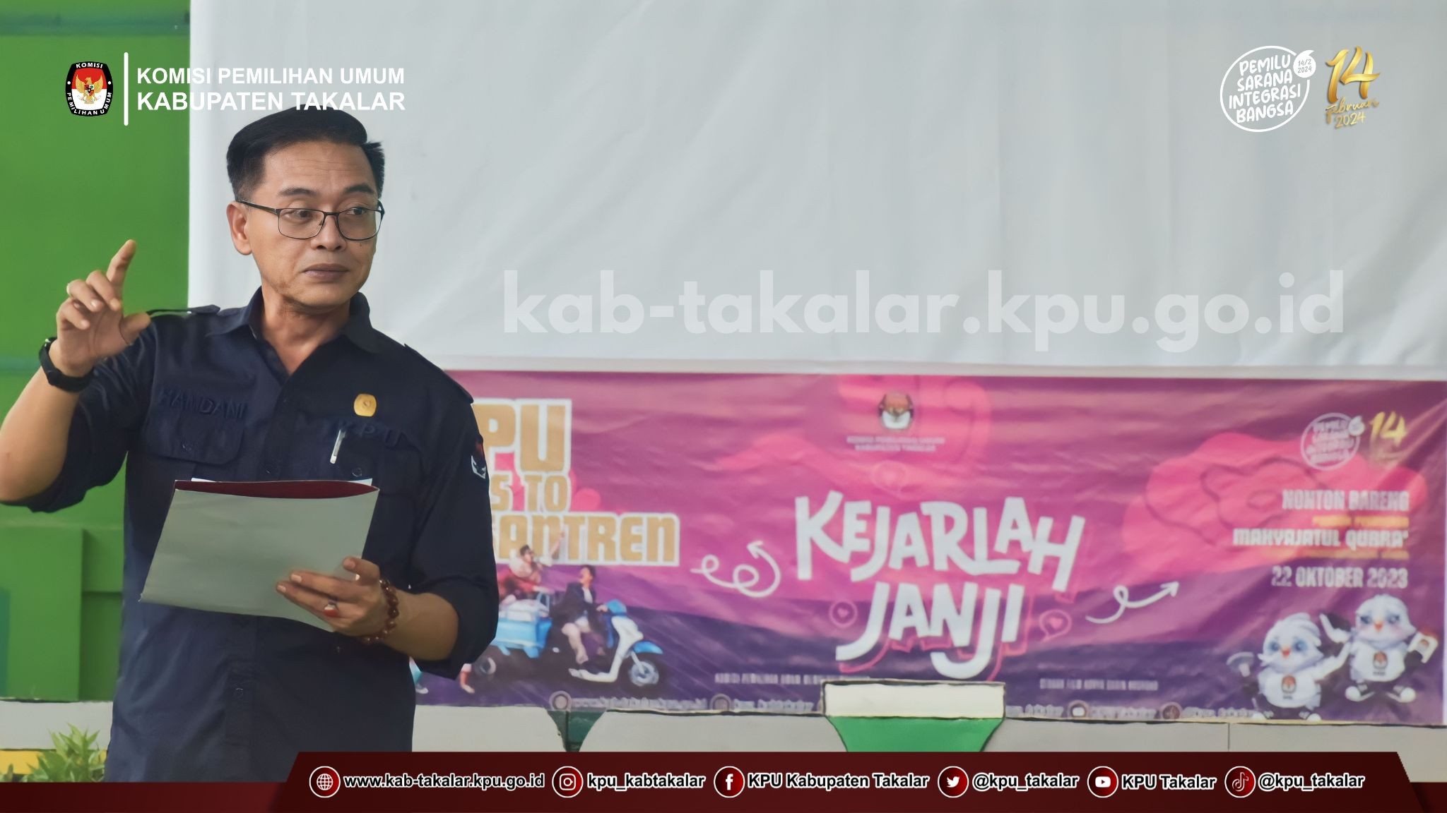 Takalar, kab-takalar.kpu.go.id, Ketua KPU Hamdani Pattiiha bersama para anggota menghadiri kegiatan KPU GOES TO PESANTREN dalam Rangka Hari Santri 22 Oktober 2023.