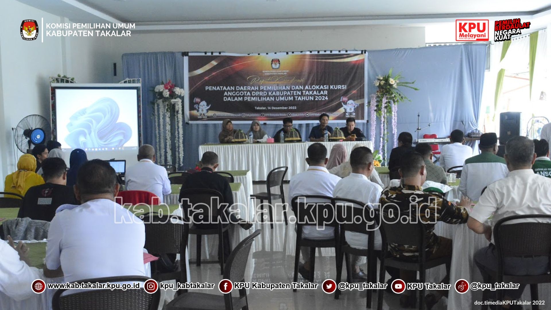 Takalar, kab-takalar.kpu.go.id, Berdasarkan Peraturan KPU nomor 6 tahun 2022 tentang Penataan Daerah Pemilihan dan Alokasi Kursi Anggota DPRD Kabupaten/Kota dalam Pemiliu tahun 2024, KPU Kabupaten Takalar melaksanakan Rapat Koordinasi terkait usulan rancangan Penataan Daerah Pemilihan dan Alokasi Kursi Anggota DPRD Kabupaten Takalar dalam Pemilihan Umum tahun 2024, Rabu (14/12/2022).