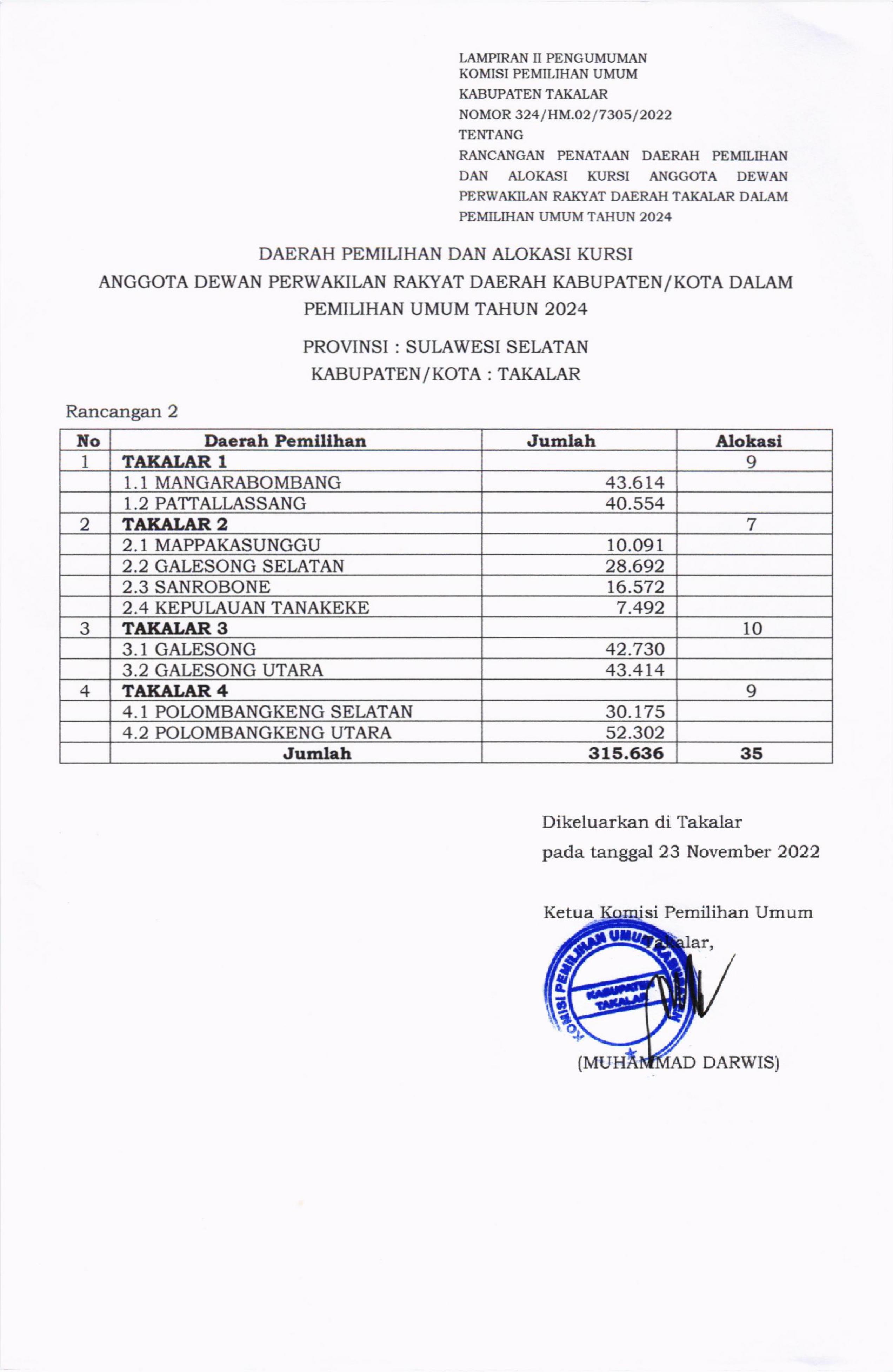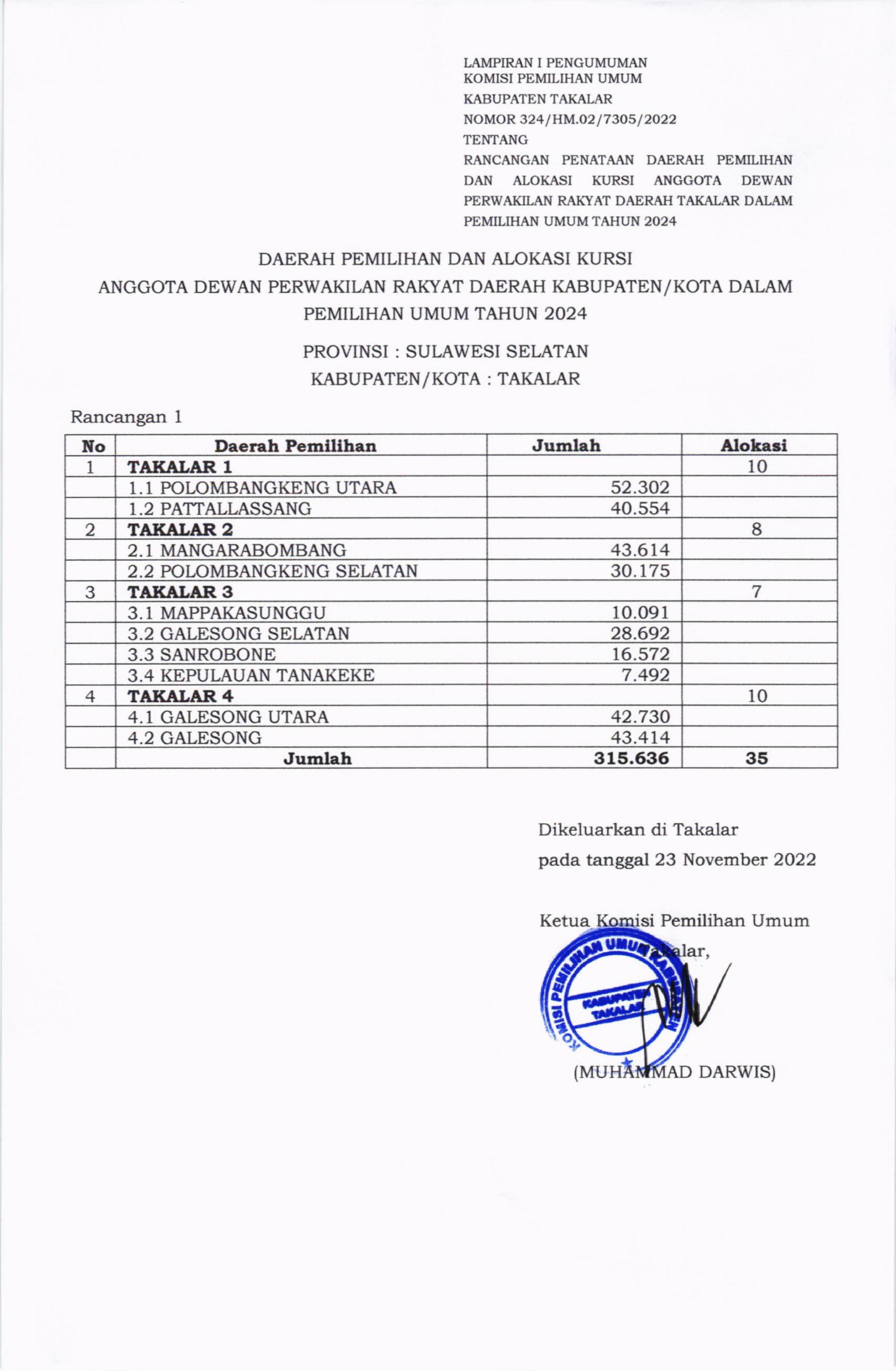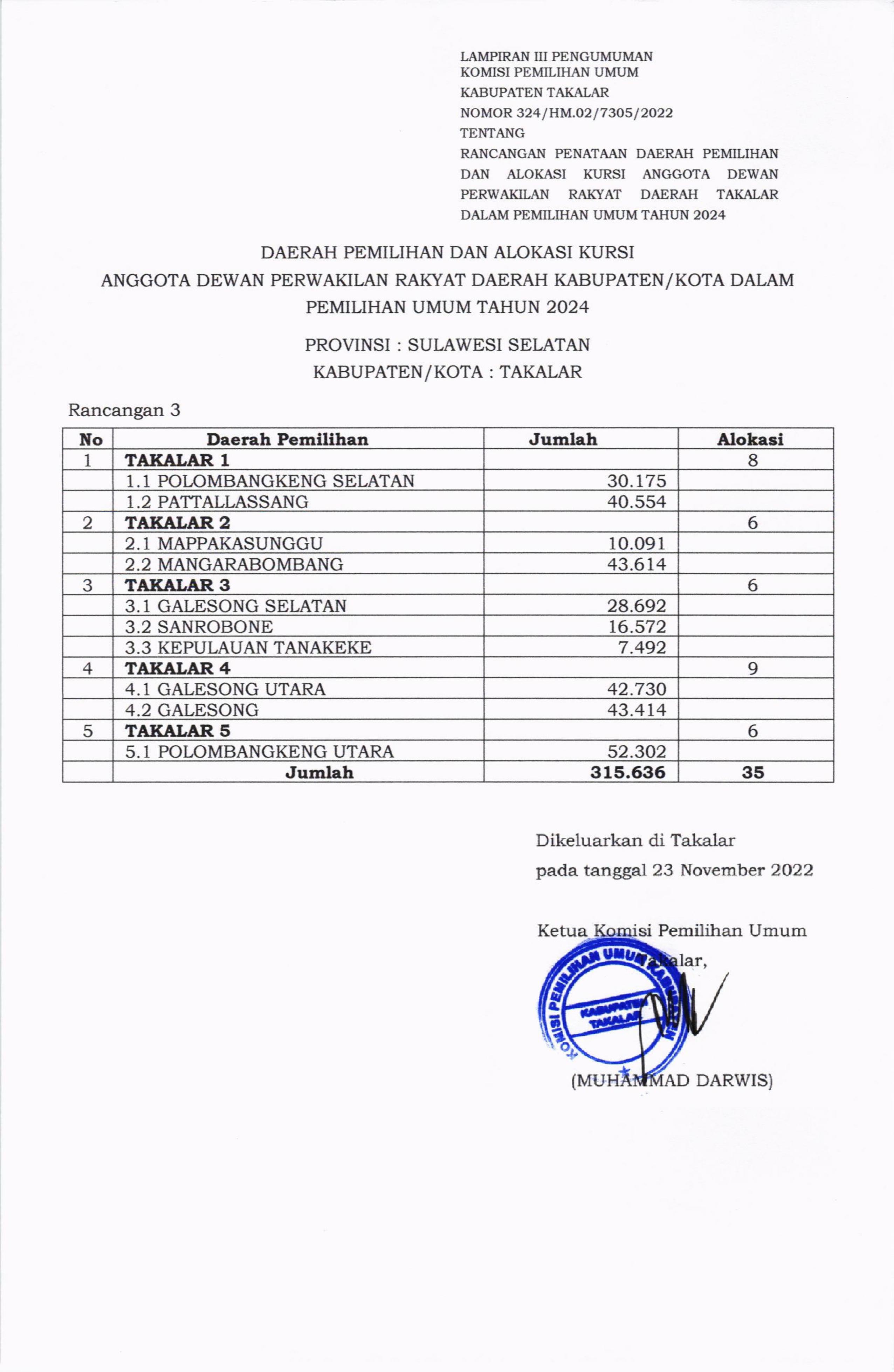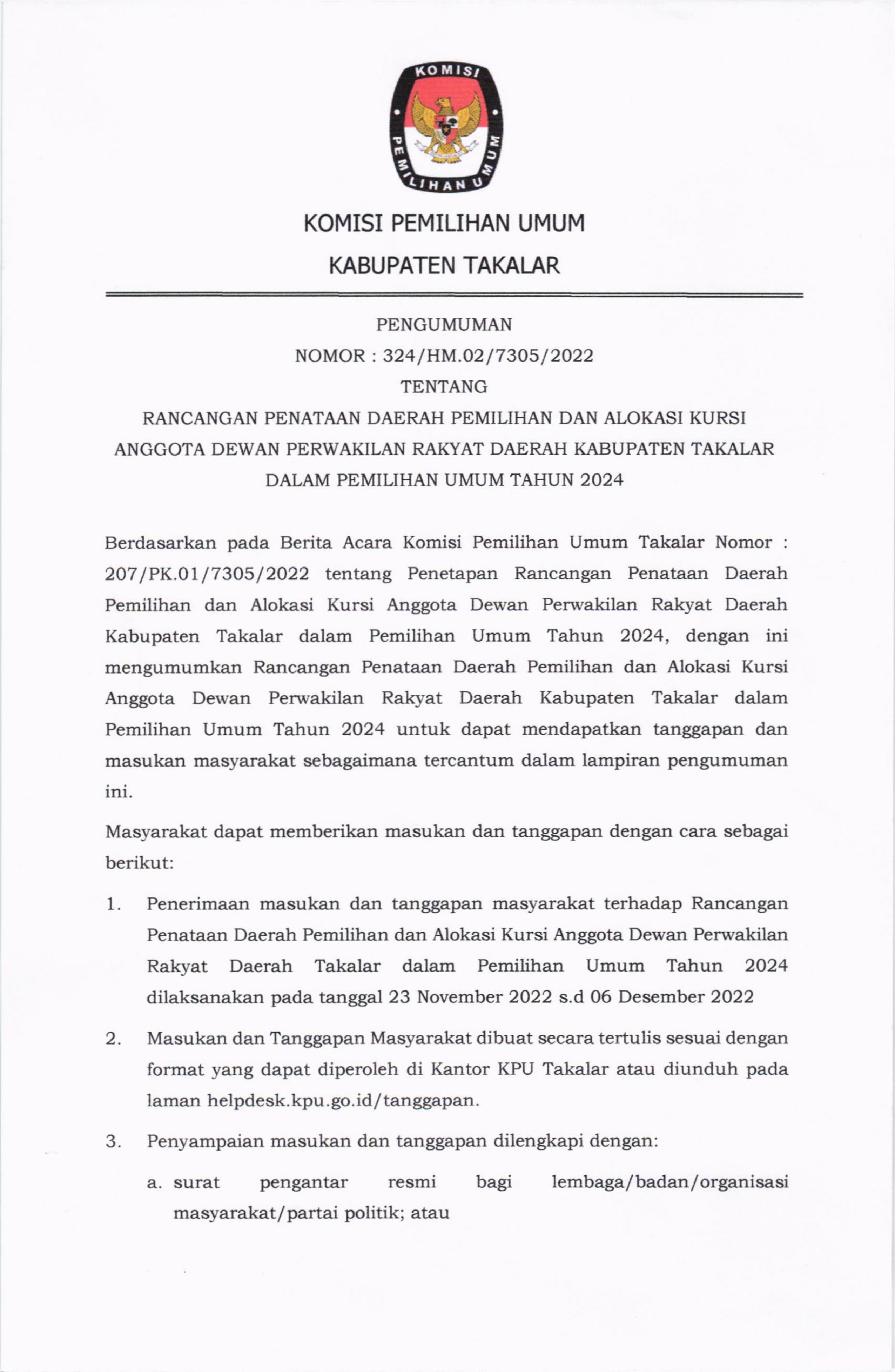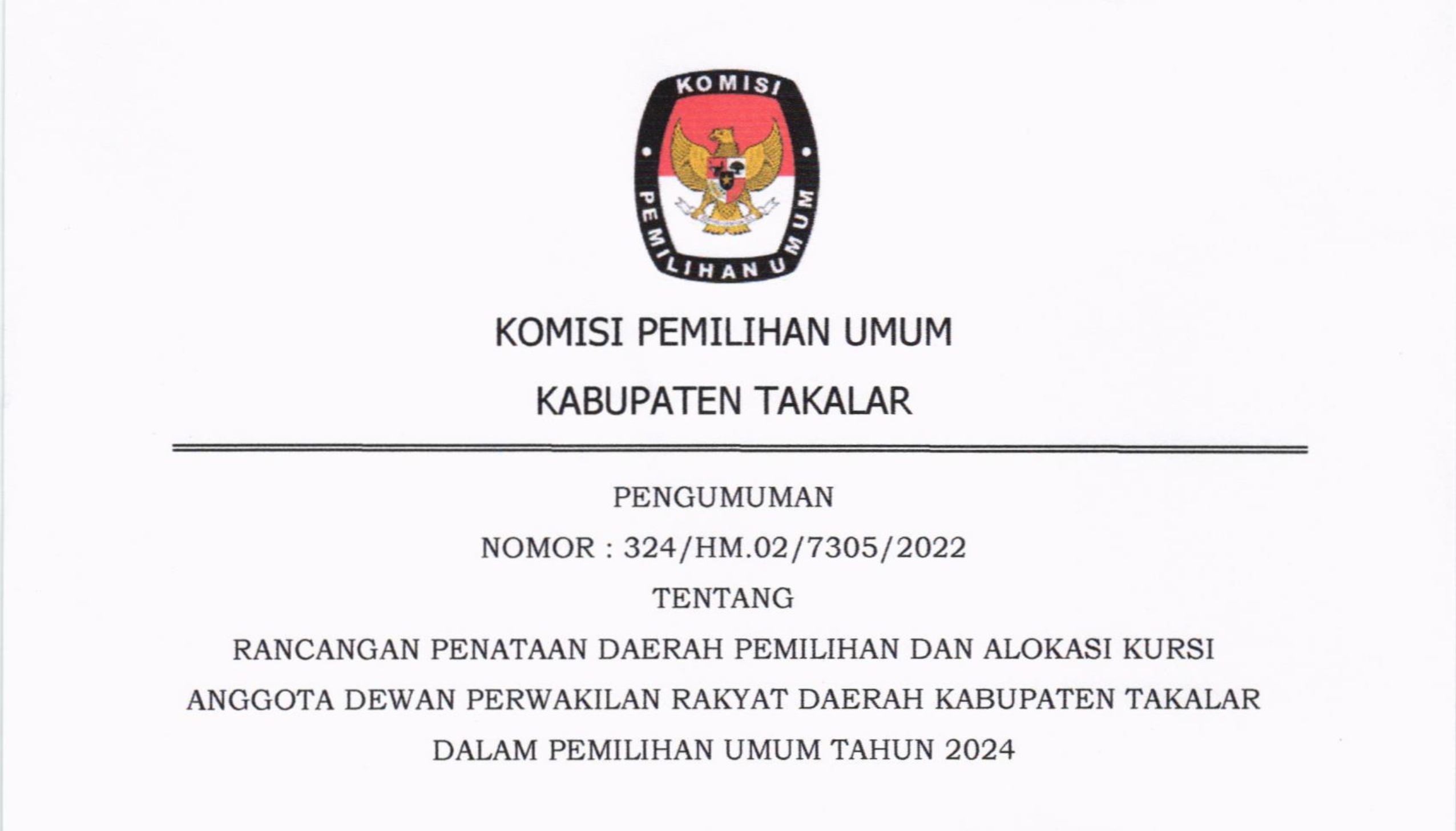 Takalar, kab-takalar.kpu.go.id, Berikut Pengumuman RANCANGAN PENATAAN DAERAH PEMILIHAN DAN ALOKASI KURSI ANGGOTA DEWAN PERWAKILAN RAKYAT DAERAH KABUPATEN TAKALAR DALAM PEMILIHAN UMUM TAHUN 2024.