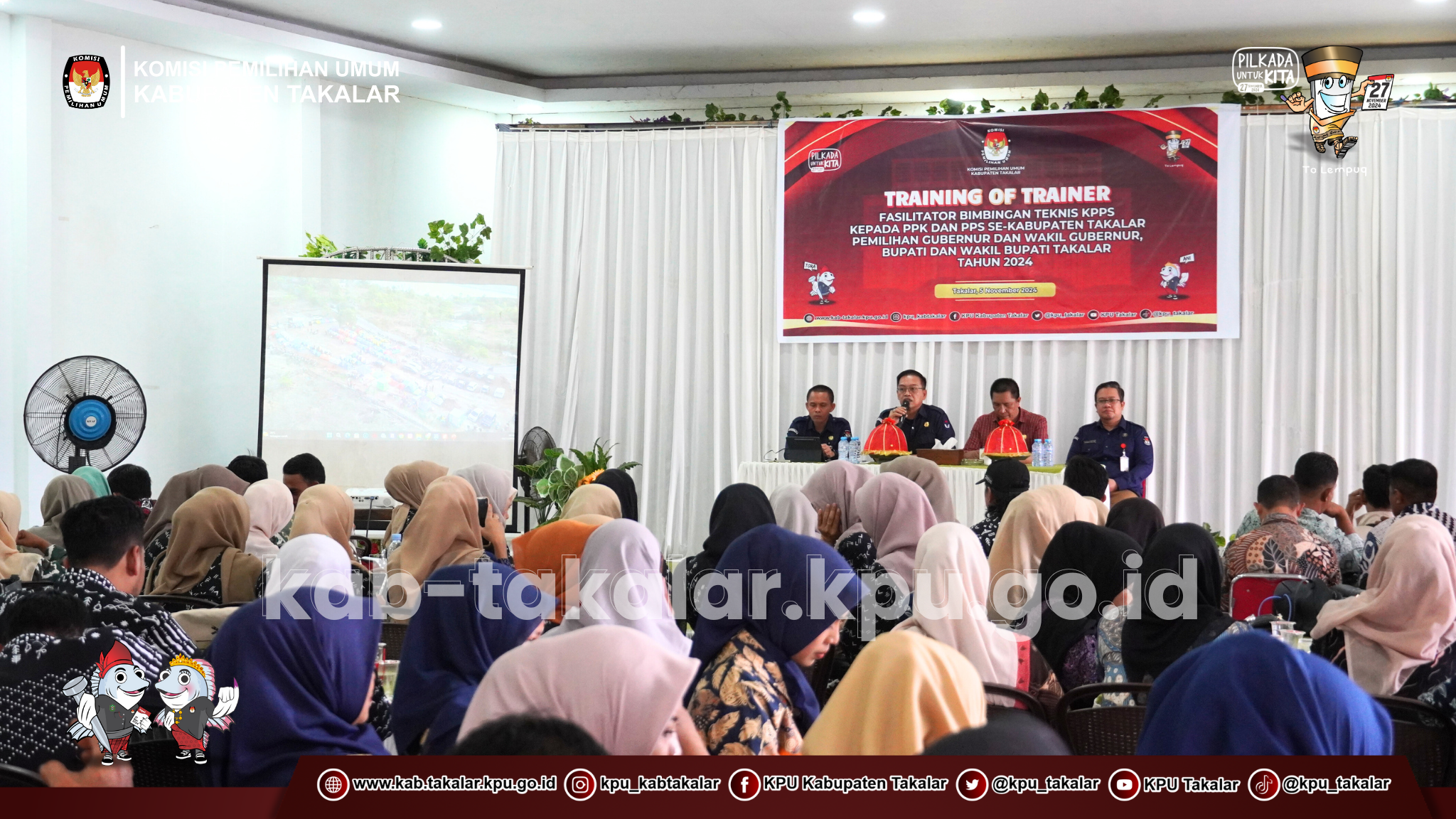 Takalar, kab-takalar.kpu.go.id - KPU Kabupaten Takalar melaksanakan Training of Trainer (ToT) Fasilitator Bimbingan Teknis Kelompok Penyelenggara Pemungutan Suara (KPPS) kepada Panitia Pemilihan Kecamatan (PPK) dan Panitia Pemungutan Suara (PPS) se-Kabupaten Takalar pada Pilkada Serentak tahun 2024, Minggu dan Selasa (3 & 5/11/2024).